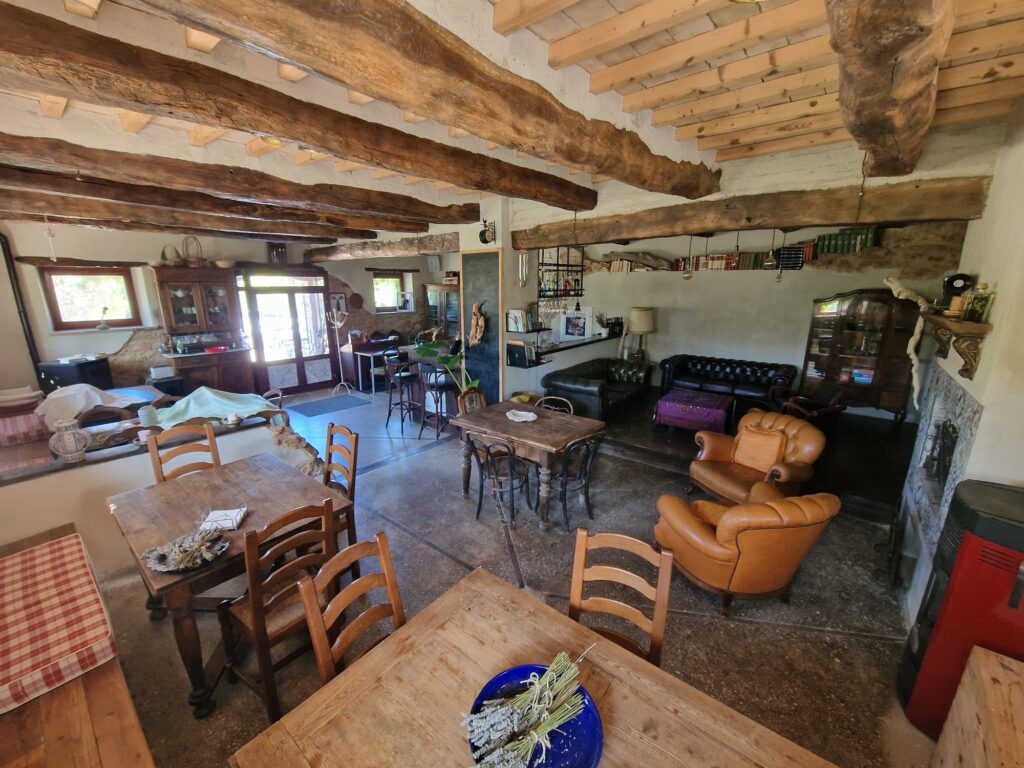 All’esterno, una piscina panoramica regala una vista spettacolare sulle montagne circostanti, mentre il lavandeto biologico e l’orto naturale completano un’atmosfera di pura armonia.